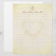 Dieses Briefpapier für Hochzeitsbriefe zeichnet sich durch einen bedrückten, Vintagen Hintergrund aus Pergamentpapier in cremigen, neutralen Tönen aus, die mit Dekorelementen in Goldtönen gestaltet sind. Es wurde entworfen, um als Gästebuchseiten für Hochzeiten verwendet zu werden, kann aber auch als Korrespondenz für Dankbriefe oder andere Bewerbungen verwendet werden.