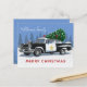 Diese Weihnachtskarte ist mit einem Vintagen Polizeiauto ausgestattet, das auf dem Dach einen grünen Kiefernbaum trägt. Personalisieren Sie mit Ihrem Familiennamen und Feiertagsgruß. Entworfen von Susan Coffey.