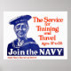Vintage U.S. Navy Rekrutierung Poster zeigt ein lächelndes Seemann. Der Dienst für Ausbildung und Reisen, Alter 17 bis 35 - Mitglied der Marine - Anwenden Marine Rekrutierungsstation