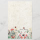 Schöne Collage der Vintagen botanischen feinen Kunst der verschiedenen roten und gelben Garten-Blumen, mit Losen Schmetterlingen, durch Redoute, mit einem Hintergrund des Imitats Büttenpapier, ist auf diesem Blumenschmetterlings- personalisierten Briefpapier. Bilder sind das public domain wegen des abgelaufenen Copyright. Collage ist durch mich.