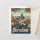 Ein einzigartiges Vintages Design mit der berühmten Sagrada Familia in Barcelona, das sich wunderbar mit einem klassischen Rennwagen verbindet. Das Kunstwerk verbindet die Pracht von Antoni Gaudís architektonischem Meisterwerk mit der eleganten Eleganz des Retro-Automobildesigns und schafft eine faszinierende Szene, die das reiche kulturelle Erbe und den dynamischen Geist der Stadt unterstreicht.