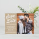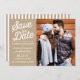 Skriptüberlagerung | Ankündigung Datum freihalten Foto Ankündigung Datum freihalten mit transparentem Banner mit Retro-Typografie und gestreiftem Hintergrund.