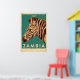 Einzigartiges Antique Style Aviation Travel Poster aus Sambia mit einem schwarz-weißen Zebra-Kopfbild auf einem tiefen Aqua-blauen Hintergrund
