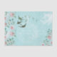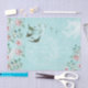 Vintages pastellfarbenes Blatt in Aqua-Weiß-Grün mit Vintagen rosa Rosen und Blätter, Text aus dem handgeschriebenen Manuskript der Alice im Wunderland, Vintage Typografie aus einem Pariser Hotel und wunderschöne Vintage Schluchten, die aus einem Teekessel zu strömen scheinen, in den Himmel zu fliegen, herumwirbeln (das Weiße Kaninchen lauert irgendwo im Blätterdach und im Hintergrund ist eine Vintage Taschenuhr), wodurch eine schöne Taschenuhr gebohrt) Britisches Papier für Tee, Natur und Literatur, perfekt für Geschenkverpackung und Entcoupage und Handwerk.