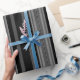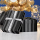Vintages monochromatisch gestreiftes Geschenkpapier. Schwarz, Grau und Weiß, bestehend aus grafisch gesteppten Streifen. Ideal für Weihnachten und die Ferienzeit.