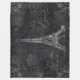 "Vintages Drehbuch Paris Eiffelturm Black Chalkboard." Einfache Farbpalette in Schwarz-Weiß. Die Vintage Schriftzeichen-Handschrift aus handgeschriebenen Buchstaben und diversen Ephemeriden wird mit den Schmuckstücken des Druckers, den Typografieelementen und einer Ätzung des Eiffelturms auf antikem Kalkbrettboden vermischt. Kunstwerk grafisch von Audrey Jeanne Roberts. Copyright.