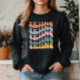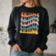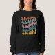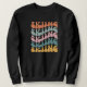 Vintages Skipullover. © T-Shirts & Sweats bei Zazzle. Dieser Vintage Design-Pullover hat das Wort Skiing wiederholt in Retro-Schriftart und verschiedenen Farben.