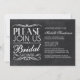 Vintag-ähnliche Brautpartyeinladung des Chic mit trendy Vintagem Typografieplakatentwurf gegen einen Tafelhintergrund.