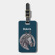 Dieses Gepäckanhänger zeichnet sich durch eine Vintage Skizze eines dunklen Pferdes und eines Hufeisens aus. Die altmodische Ätzung erscheint in Schwarz und Grau vor einem dunkelblauen Hintergrund. Ihr Name erscheint über dem Bild und Ihre Kontaktinformationen erscheinen auf der Rückseite. Alle Texte können leicht personalisiert werden.