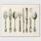 Vintages Tischbesteck, das verschiedene antike Messer des Sets, Löffel und Gabelzeichnungen in den goldenen und silbernen Farben speist
