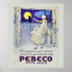 Eine wunderschön illustrierte Werbung für Pebeco Toothpaste. In Blautönen, mit einer hübschen Dame in einem wunderschönen Badezimmer, das eine schwarze Katze gegen einen gelben Vollmond anschaut.