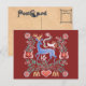 Ungarisches Folkkunstmotiv auf rotem Hintergrund; mit Vintager Postkartenrückseite