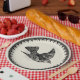 Die Vintage Schwarz-Weiß-Illustration schmückt dieses hellcremefarbene beige Papier-Plattendesign.