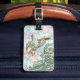 Ein Goldvogel fliegt über einen Regenbogen und Wirbel mit grünen und weißen Wirbel in den Ecken. Die Rückseite hat den gleichen Regenbogen Hintergrund mit Platz für Ihren Namen.