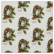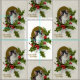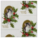 Ein graues und weißes Weihnachtskätzchen ist- im Gold mit Stechpalme und Beeren gerahmt. Mitteilung: Weihnachtsgrüße! Bild einer Vintagen Postkarten-Grafik. Klicken Sie an "besonders anfertigen" zur Änderungsbildgröße und/oder zum Fliesenmuster.