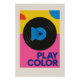 Das Vinyl wird zu einem spielerischen Icon: das Symbol des "Play", des Festes, der fröhlichen Rotation. Das Plakat zeigt die Energie der Musik durch eine helle Farbpalette, eine einfache, aber rhythmische Komposition, mit einer digitalen Rücktaste. 🎨 Visueller Stil Inspiriert vom Pop-Vektorstil, der Plakatgestaltung der 80er Jahre und dem Design Memphis revistiert. Sättigte Palette: gelb, blau, pink fuchsia, schwarz. Kreisform, Nettoflachdruckform, stilisierte grafische Elemente. Ein leicht 3D-Effekt, simuliert durch Vektorombragen. 📄 Beschreibung Eine stilisierte Platte in schwarzer Ebene ist von farbigen Modulen umgeben, die auf Knöpfe, Bahnsegmente, feststehende Wellen hinweisen. Eine dreieckige Form (Play-Knopf) zeigt in die Mitte. Der Hintergrund ist in zwei kontrastierende Farbtöne (gelb/rosa) unterteilt. Der Titel "Play Color"ist in einer gerundeten Retro-Futuristen-Typografie enthalten. Das Plakat atmet die gute musikalische Stimmung zwischen Festivalplakat und Kultobjektdesign.