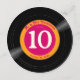 Hell und mutig und 70er. Eine Retro-Vinyl-Schallplatte Stil runden Papier Hochzeit Tischnummer. In goldfarbenem Orange, heißem Rosa und weiß ist dies ein einzigartiger Akzent für Ihre Tische. Das Design ist stilvoll und lesbar und bietet ein Vinyl-Schallplattenbild. Das Etikett zeigt Ihre Tischnummer an. Der Labelrahmen enthält Ihre Namen und das Hochzeitdatum in einem Retro-Skript. Wenn Sie Liebe oder Vintagen Stil, ist dies ein guter Weg, um den Ton für Ihre Groovy Hochzeit Set. Die Farben in diesem Design werden sich gut mit vielen Blumen koordinieren, die Ihren Hochzeitstabletts eine weitere Schicht hinzufügen. Die Vorderseite und die Rückseite sind identisch gestaltet, sodass Sie zusätzliche Anzeigeoptionen haben. Alle Texte sind von Ihnen personalisiert und arbeiten in jeder Sprache, Label, Rahmen und Textfarben können im Entwurfswerkzeug angepasst werden. Die Farbe der Aufnahme ist schwarz.