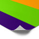 Hälfte eines schwarzen Schallplatten in einem farbigen Cover von vertikalen großen Streifen geschrieben MUSIC