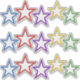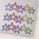 Sterne in verschiedenen Größen und Farben (blau, rot, lila, gelb und grün). 3 einzelne Aufkleber lassen sich ganz einfach zu Gruppenstars aufteilen, drei von jeder Farbe.
