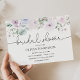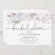 Jolie invitation à la douche nuptiale avec de l'aquarelle verte et violet fleurons violet violet. Customisez avec vos informations pour que la mariée soit mariée.