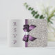 Cartes de réponse plates personnalisées pour RSVP formel pour tout événement - mariages, baby showers, fête d'anniversaire, sweet 16, célébrations de Quinceanera, fiançailles, douche de mariée, etc. Cartes de réponse personnalisées élégantes en argent et violet avec un motif brillant imprimé pailleté, strass, sequins, jolis rubans et nœuds vectoriels brillants imprimés et image élégante et stylée de diamants et bijoux bling. Ces RSVP élégants et glamour sont décorés des deux côtés. Cartes doubles élégantes, chic, tendance, modernes avec éclat et glamour. J'ai des produits assortis dans ma boutique. Le texte, la police et les couleurs de la police sont entièrement personnalisables pour répondre à vos besoins. Si vous avez besoin d'aide pour personnaliser votre produit, veuillez me contacter via ma boutique. Je serai ravi de