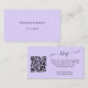 Personalisieren und fügen Sie Ihre Namen, Hochzeitwebsite url für Ihre eigenen QR-Code und Text. Violett, lavenderfarbener Hintergrund, schwarzer Text.