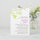 Dieses elegante und romantische Abendessen mit Probe bietet einen zarten Baumzweig mit grünen Kalktönen und allen wichtigen Informationen für Ihr nächstes Abendessen. Die Namen der Braut und des Bräutigams sind violett lila. Das stimmt sich gut mit der Erholung des Violet Romance Wedding Set ab.