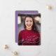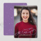 Célébrez votre diplômé en style avec ce faire-part unique de graduation photo. Il est doté d'une photo à fond saigné avec un faux script violet. Le nom, l'année et le nom de l'école du diplômé sont tous modifiables.