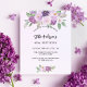 Ein violetter, lavendigerer, wasserfarbener Hintergrund. Die Einrichtung ist mit violetten und lila Blume und Pflanzen in Aquarellen gestaltet. Personalisieren Sie Ihren Namen und Ihre Party-Daten und fügen Sie diese hinzu. 1 Blatt = 1 Einladung mit Druckkante bis Kante.