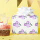 Violette Blumen und Grünmuster Geschenkpapier