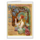 Die Karte ist Vintag. Es ist ein hübsches Bild. Es hat alle Arten Blumen auf dem Plakat. Es gibt Iris und andere Blumen.