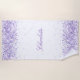 Ein weißer Hintergrund. Personalisieren Sie Ihren Namen und fügen Sie ihn hinzu. Mit violettem, lavendelfarbenem Konfetti dekoriert. Der Name ist mit einem modernen handgeschriebenen Stilskript geschrieben.