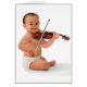 Ein schönes, helles mit Augen Baby sitzt aufrecht und spielt Geige.