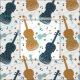 Festiges Violinmuster in Blau und Gold.