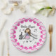 Violinen-Spielerpapier-Teller kennzeichnet einen Strichmännchenmädchenviolinen-Spielerentwurf mit einer breiten Grenze der Zickzack Streifen von rosa, von hellrosa, von Grauem und Weiß.