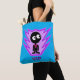 Niedliche kleine Alien ist VIP der Besucher mit schwarzer und lila Silhouette Blitzlicht Zickzack Hintergrund.