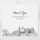 Modernes Virginia Beach Hochzeitskyline personalisiert Champagner-Label. Das Design zeigt eine atemberaubende Skizze mit der Möglichkeit, Ihre Namen und den genauen Standort anzupassen. Geben Sie das Zazzle Design Tool für zusätzliche Anpassungen ein.