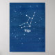 Ein Poster mit dem Sternbild Virgo im Nachthimmel mit indigofarbenem Waschhintergrund. Spielplakat für sich selbst oder Geschenk für einen Freund der Jungfrau. Die anderen Sternzeichen finden Sie auf einer Vielzahl von Artikeln in meinem Shop.