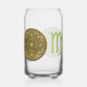Ce mandala a été conçu pour le signe zodiaque Virgo, représentant une pierre péridote au centre entourée d'éléments représentant le signe, comme le symbole du signe, la constellation, et le symbole alchimique de la Terre, ainsi que des vignes et des tissages en fibre qui l'enveloppent dans une image solide dans des tons vert clair, cuivre et brun. Cette verrerie est également disponible dans les styles vin et roche sans tige.