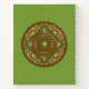 Diese Mandala wurde für das Tierkreiszeichen Virgo entworfen, das einen Peridot-Stein in der Mitte darstellt, umgeben von Elementen, die das Schild darstellen, wie das Symbol für das Schild, die Konstellation und das alchemistische Symbol für die Erde, sowie filigrane Weinreben und Weben, die alles in ein solides Bild in hellgrünen, kupfer und braunen Tönen einwickeln.