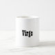 This Morphing Mug shows a black text word Virgo on a white background. The word Virgo is the sixth Zodiac sign. When you put a hot drink in the mug the word Virgo will appear. The name can be changed to a text or script name. The mug is a white ceramic morphing mug with a dark handle. The mug is an eleven ounce mug.