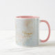 Elegante Astrologie Thema zodiac Virgo die Jungfrau Sternzeichen Coffee Tasse auf subtile eisblauen mottles kosmischen Hintergrund. Populäre Schriftart-Typografie Monogramm Name & Textdetails können leicht personalisiert oder gelöscht werden. Eine Touch himmlischer Imitate Gold Glitzer fügt ein wenig Glamour & mystik. Erhältlich in allen 12 Zeichen, um ein passendes Set zu erstellen - mit der Option, die Farbe im Interieur anzupassen und über das Bearbeitungsmenü von Zazzle zu bearbeiten.