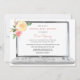 Eine Babydusche ist perfekt, wenn Liebende nicht zusammen sein können, aber trotzdem gewollt werden, die Eltern zu duschen, um mit Liebe und Geschenken zu sein, um sich auf die Ankunft ihres Babys vorzubereiten. Diese Einladung enthält eine Laptop-Illustration in Aquarellfarbe mit rosa und gelben Blumen in der oberen Ecke des Designs. Personalisieren Sie Ihre Daten oder klicken Sie auf "Weitere Anpassungen vornehmen", um Schriftart Stile, Größe und Farben zu bearbeiten.