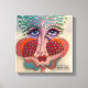 C'est un visage lunatique posé sur une toile. Il provient d'un dessin acrylique.