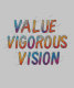 Le design du t-shirt "Value Vigore Vision" est audacieux et dynamique. L'expression est rendue dans une police vibrante et multicolore qui s'affiche contre l'arrière - plan. Le design est énergique et attrayant, ce qui en fait un choix parfait pour ceux qui apprécient l'ambition et l'avant-garde.