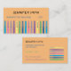 Cartes de visite de créateurs à deux faces pastel orange avec le mignon doodle de stylos à encre colorés. Utilisez le modèle pour les personnaliser avec votre nom, titre, et toutes les informations nécessaires. Ils sont parfaits pour les professeurs substituts d'art, les aides-enseignants, les éducateurs ou les tuteurs. Ils sont également disponibles en turquoise et noir. © ArianeC Illustrations-Tous droits réservés