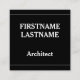 Ce design carte de visite comporte un nom, une profession et des coordonnées personnalisables. Il pourrait être utilisé par un professionnel de la conception de bâtiments comme un architecte, un spécialiste de la décoration d'intérieur, un décorateur d'intérieur ou un expert en décoration d'intérieur.