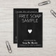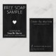 Rien ne dit "Merci, j'apprécie votre entreprise." plus qu'un petit cadeau dans votre sac de biens achetés. Cette carte d'affichage est un excellent outil promotionnel car votre client est susceptible de transmettre ce petit échantillon à un ami, il suffit de couper les lignes verticales au milieu de la carte avec une lame et filtrer un petit échantillon de savon à travers. Le design a un arrière - plan de tableau noir.