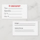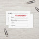 Visite Carte de contact d'urgence