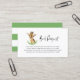 Demandez aux invités de vous aider à remplir la bibliothèque de votre bébé. Demandez-leur d'apporter un livre au lieu d'une carte avec cette demande d'encart. Il présente des illustrations d'aquarelle d'une girafe et d'un feuillage avec un script fantaisiste. Cette carte de baby shower safari est parfaite pour les baby showers d'été. Des éléments correspondants sont disponibles.